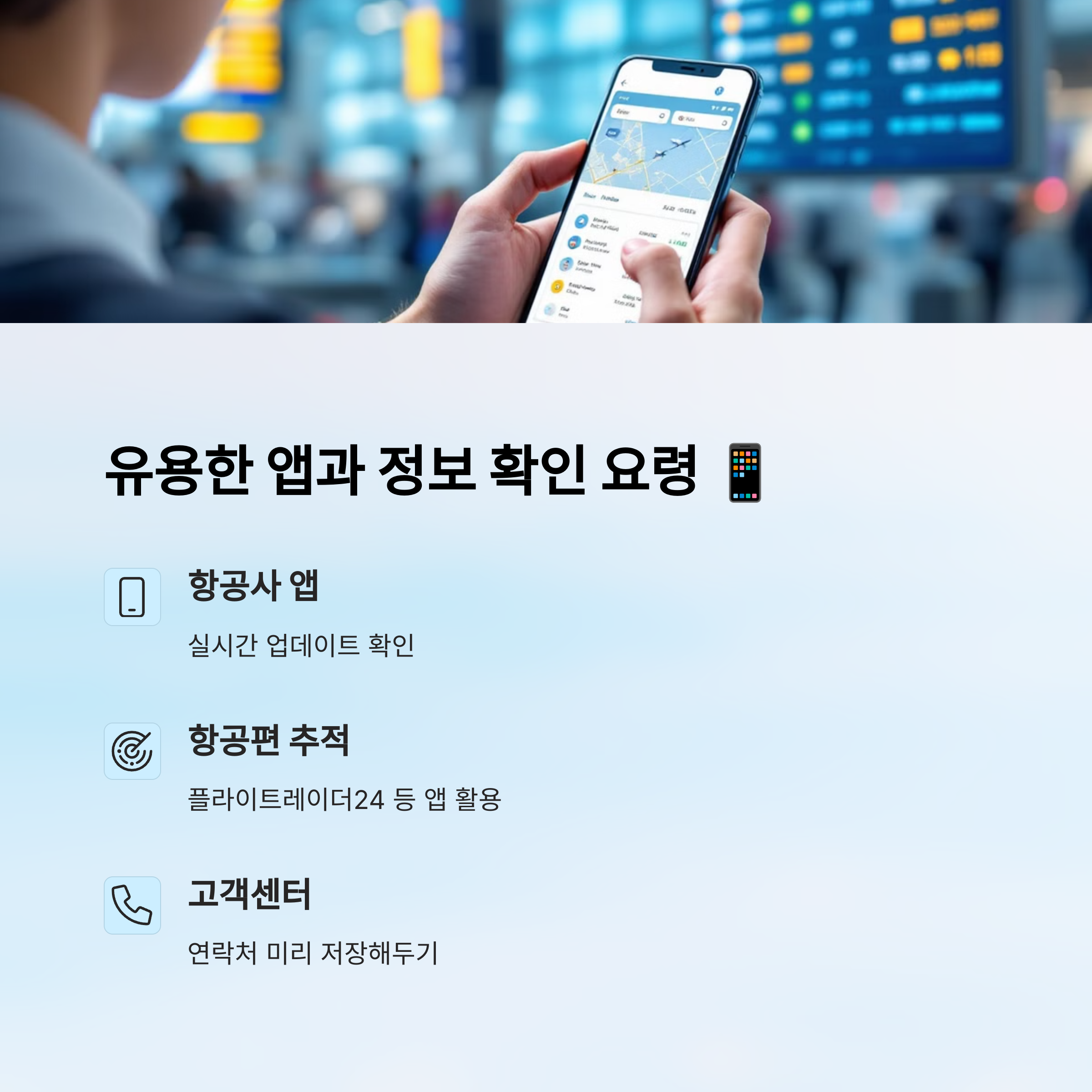 | 2 | 항공사 앱 확인 | 실시간 알림 확인 |