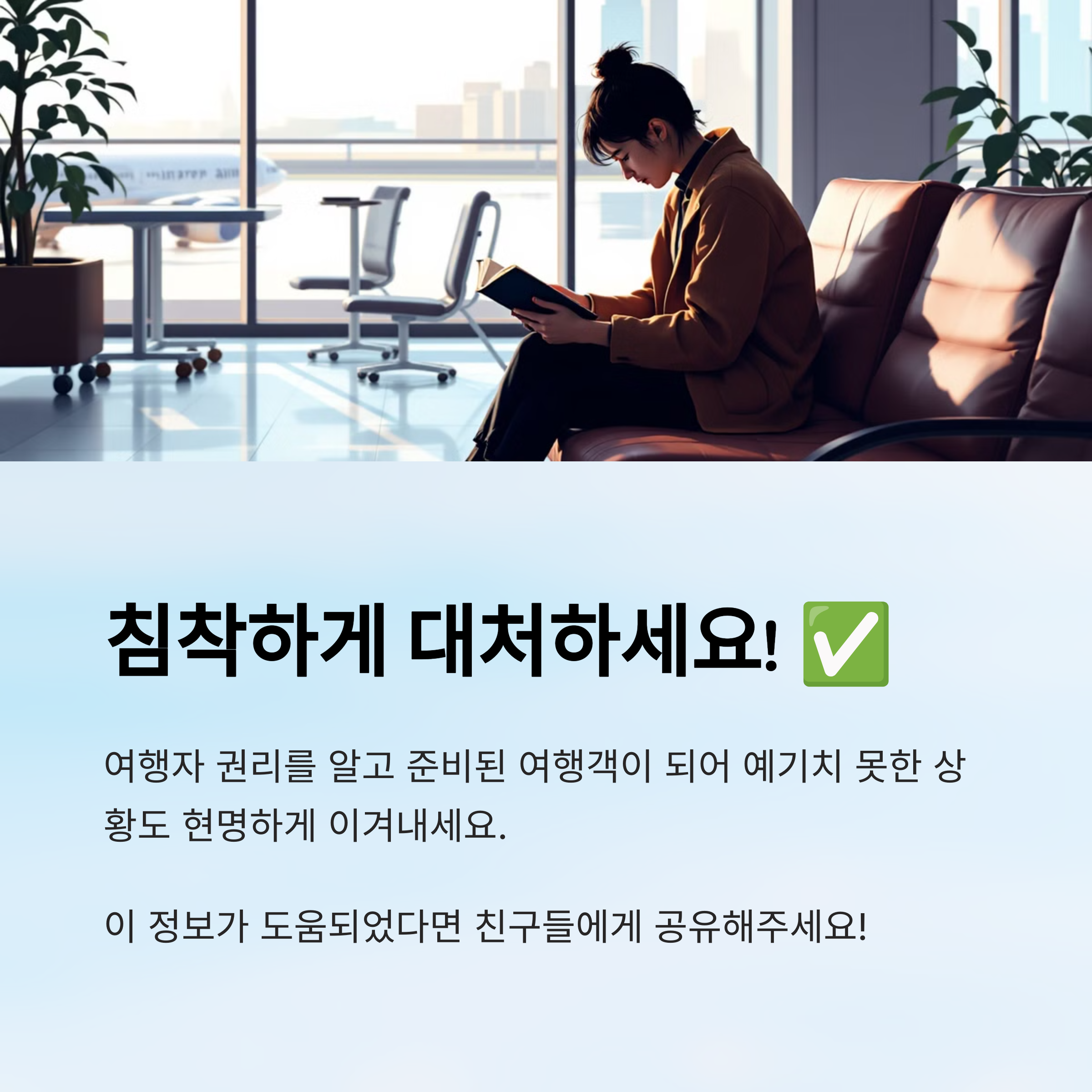 이 글에서는 ‘공항에서 지연됐을 때 행동 매뉴얼’을 통해 실제로 바로 활용할 수 있는 팁과 함께, 무료 제공되는 가이드북 형식의 요약 자료까지 준비했어요. 휴대폰에 저장해두면 언제든 활용할 수 있답니다.