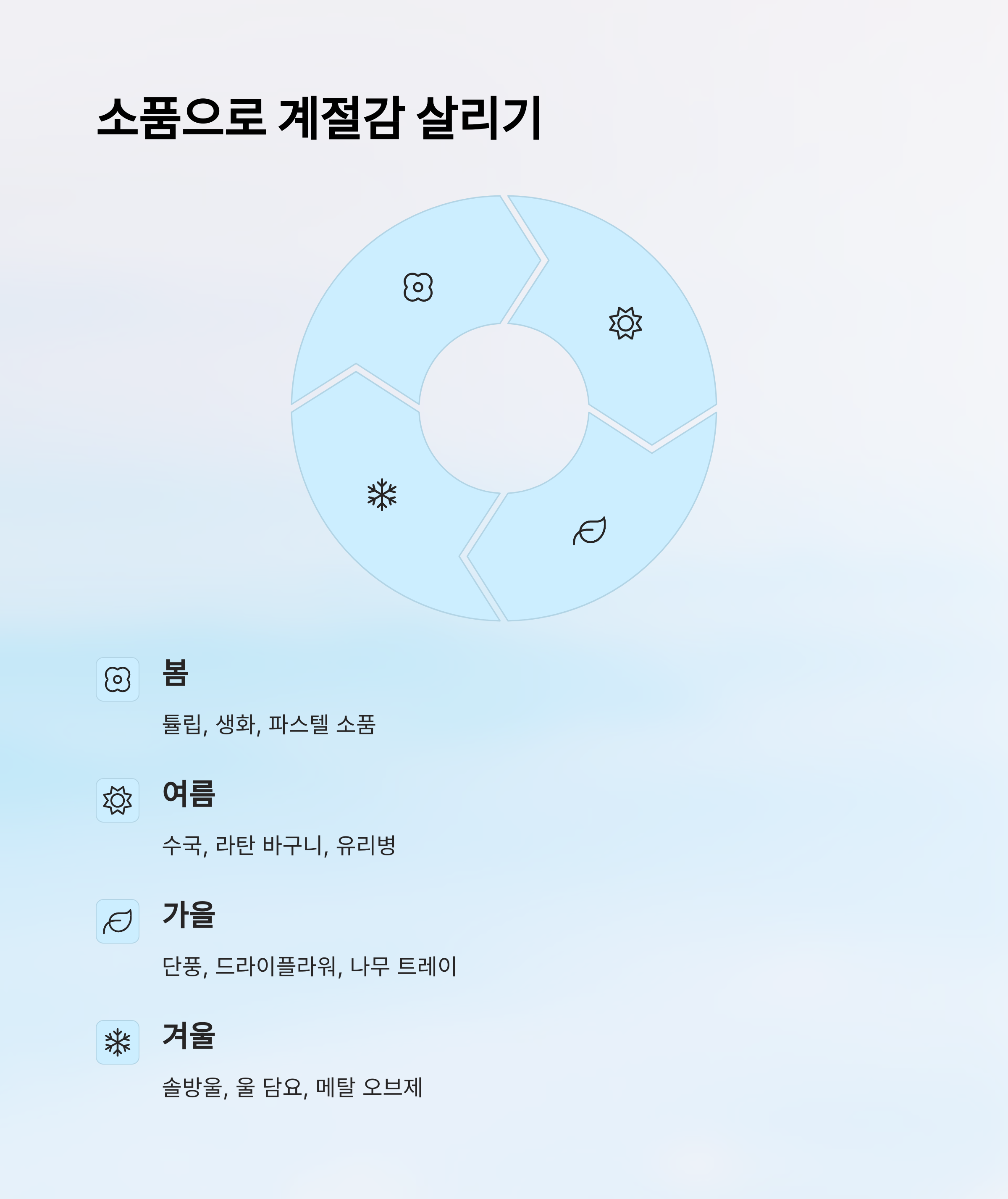 A4. 계절별 가이드만 따라 해도 실패 없이 꾸밀 수 있어요!