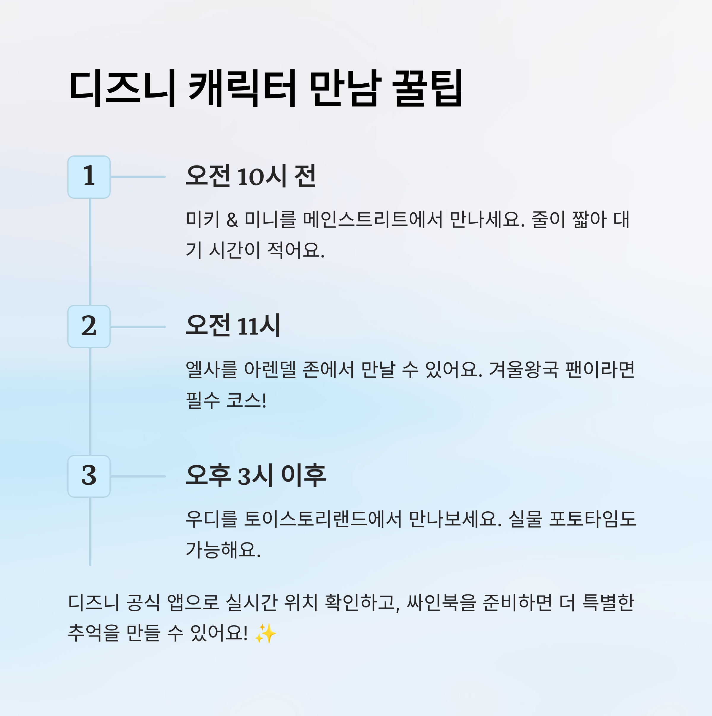 🎉 디즈니 캐릭터와 만나는 팁