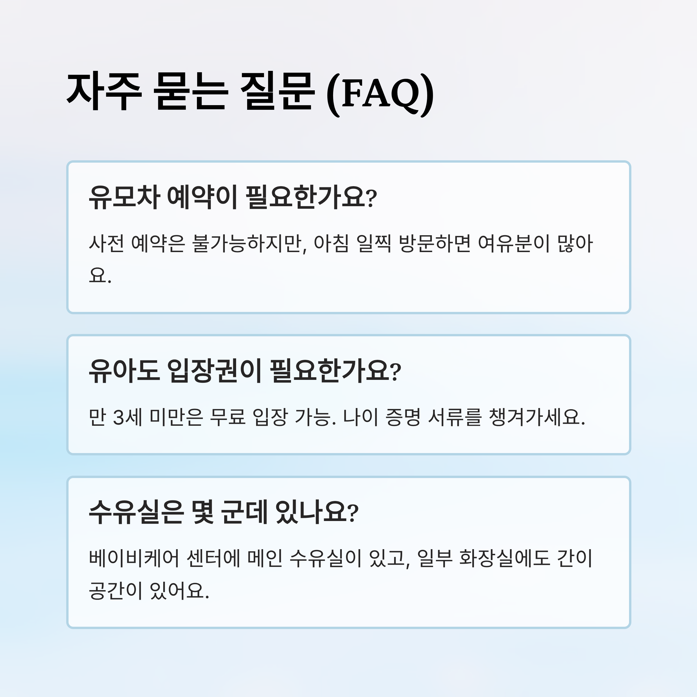 | 베이비케어 센터 | 메인스트리트 근처 | 무료 | 기저귀교환대, 수유실, 정수기 |