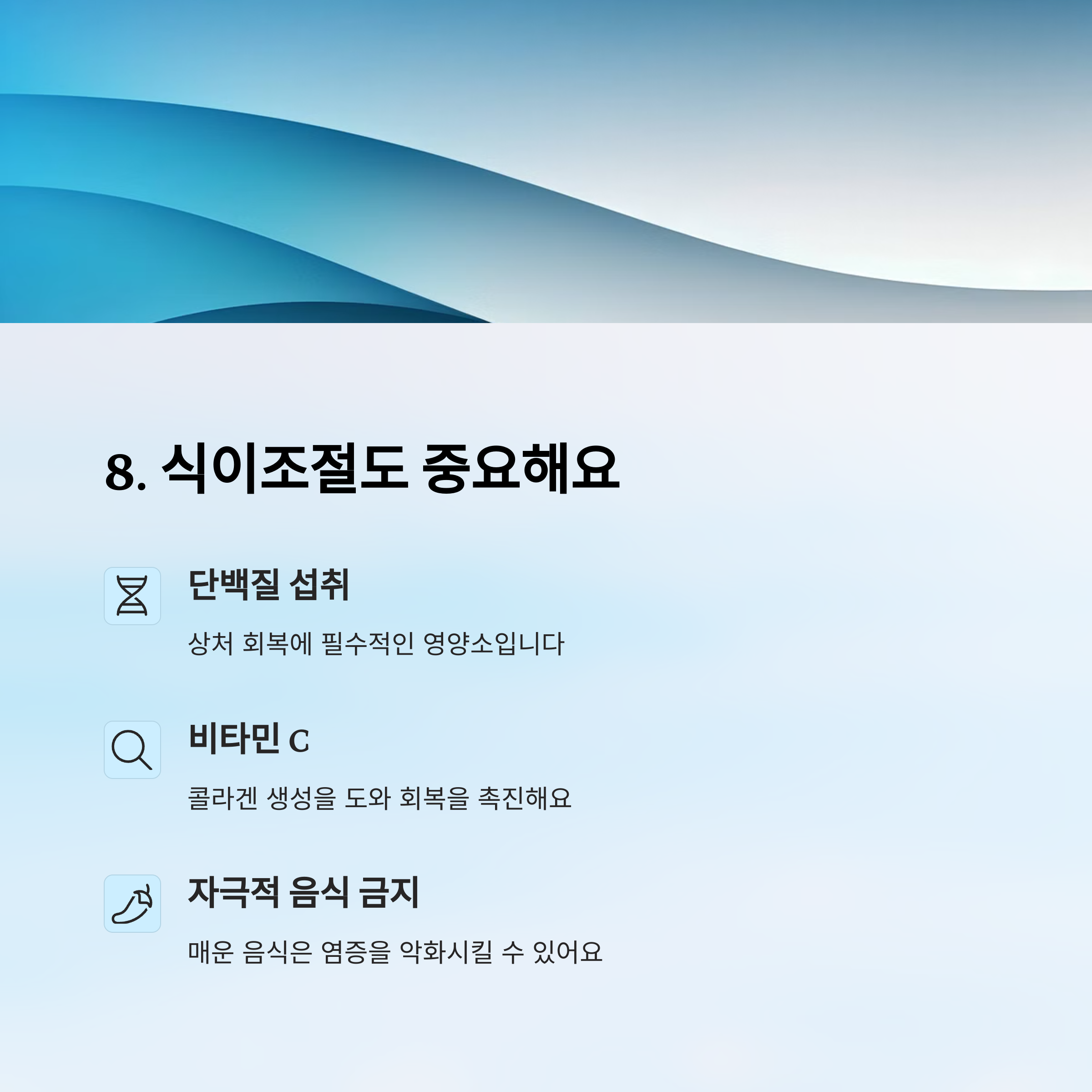 수면 부족은 회복을 지연시키고, 붓기나 트러블의 원인이 될 수 있어요. 또, 자는 자세도 중요해서 얼굴이 베개에 직접 닿지 않도록 주의해주는 게 좋아요.