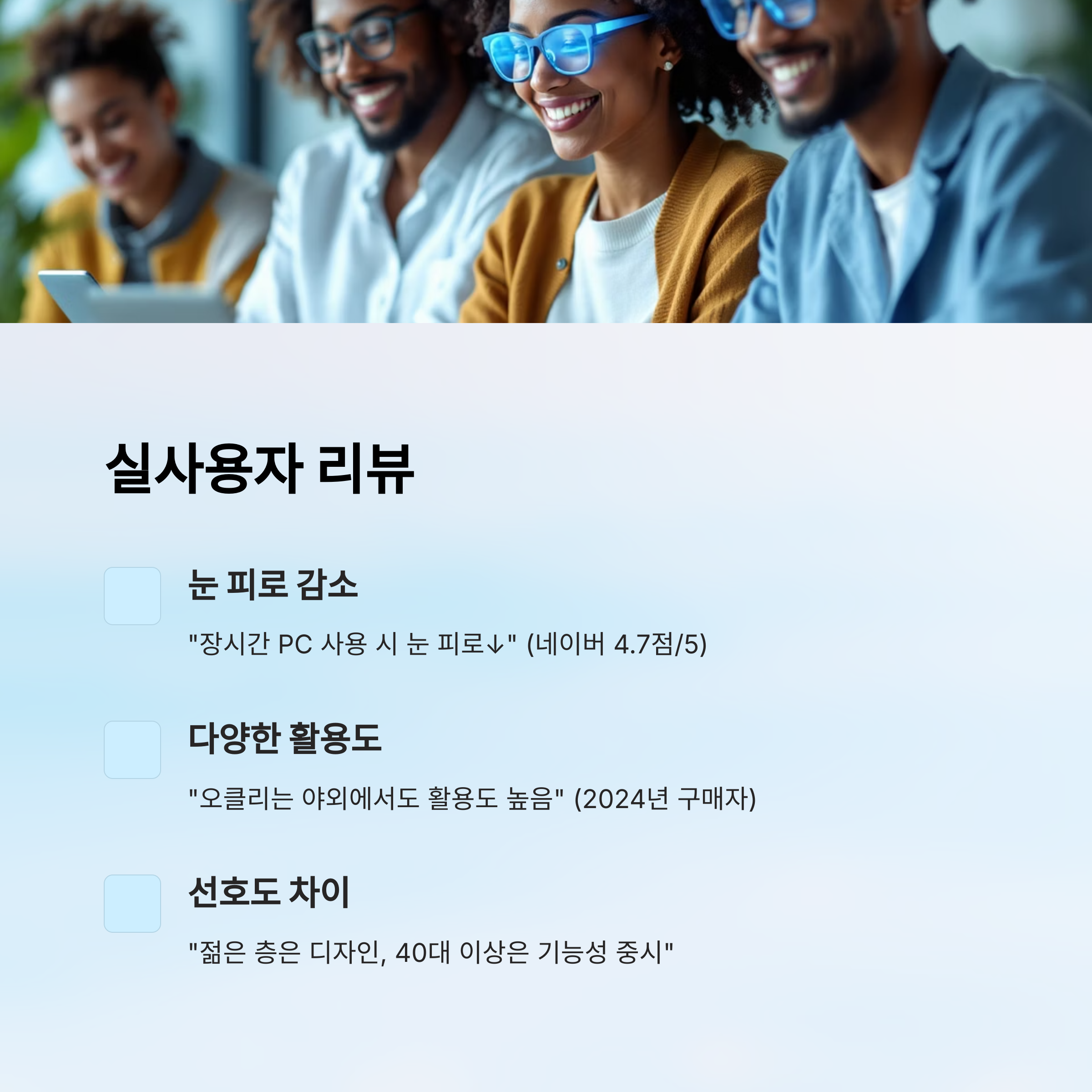 블루라이트 차단 안경을 실제로 사용한 사람들은 어떤 반응을 보였을까요? 각 브랜드별로 사용자들이 남긴 장점과 단점을 정리해봤어요! 😊