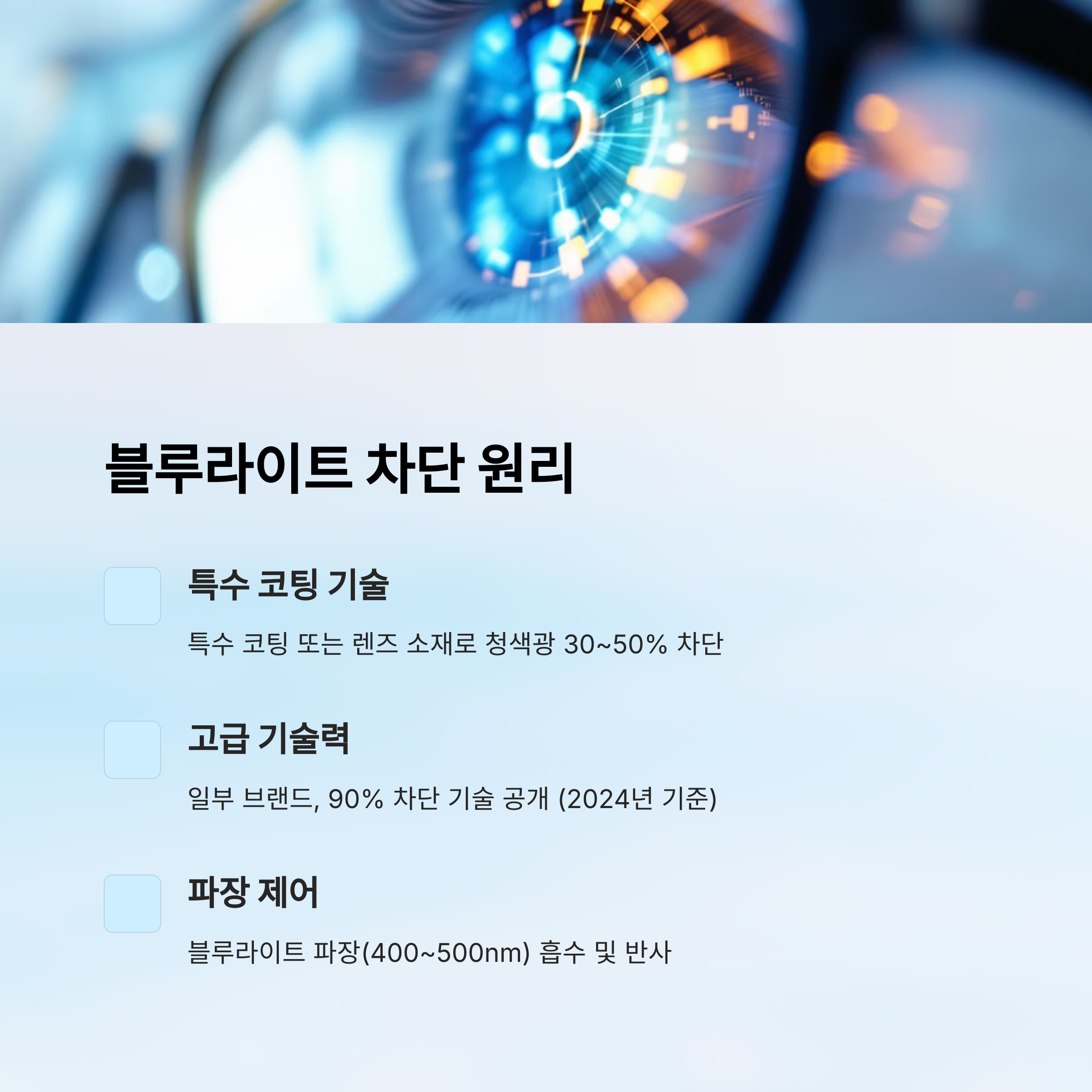 블루라이트 차단 안경은 렌즈에 특수 코팅을 입혀서 이 청색광을 차단하거나 반사시키는 방식으로 작동해요. 📡