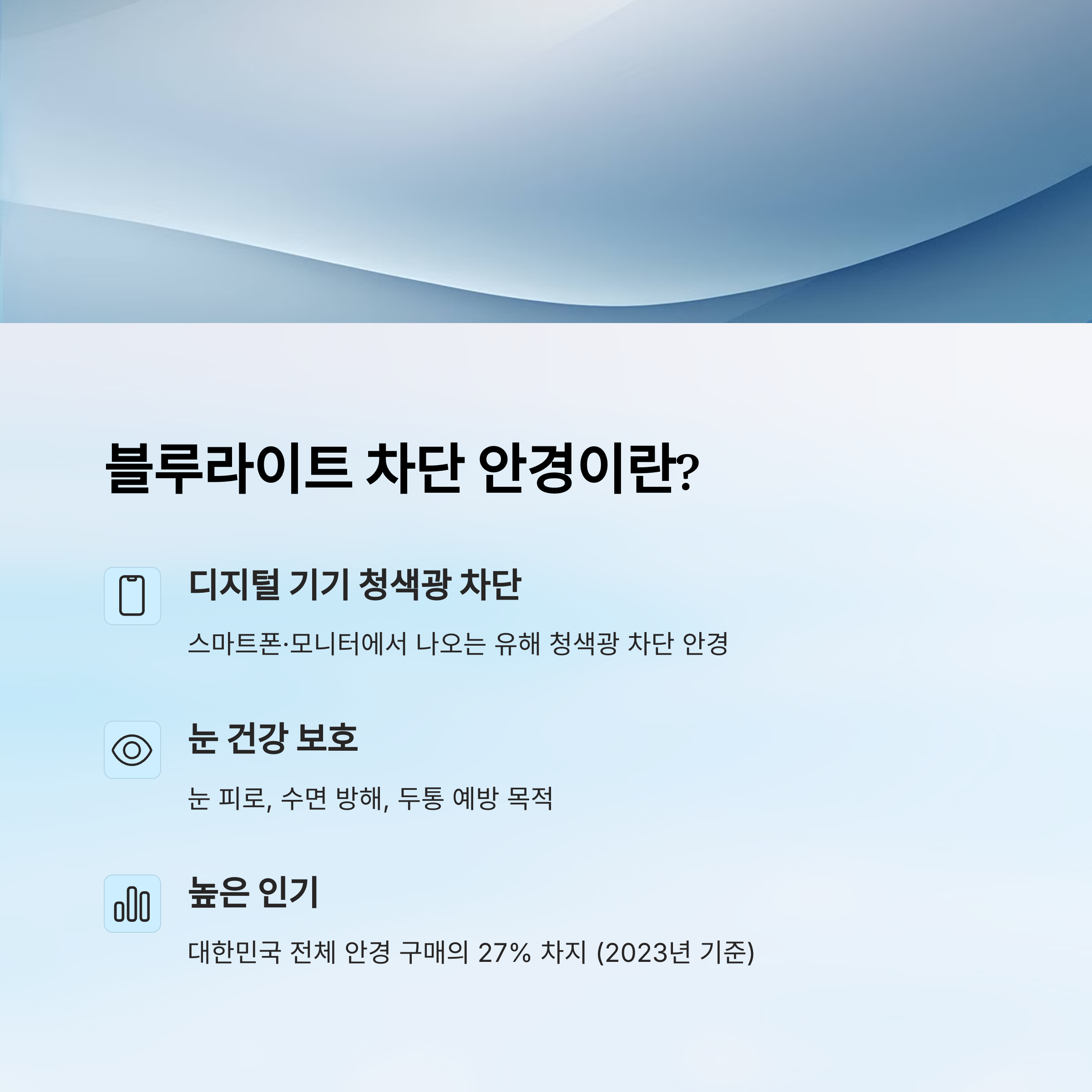 블루라이트 차단 안경은 스마트폰, 태블릿, 컴퓨터, TV 등에서 나오는 블루라이트를 막아주는 기능을 가진 안경이에요. 💻📱