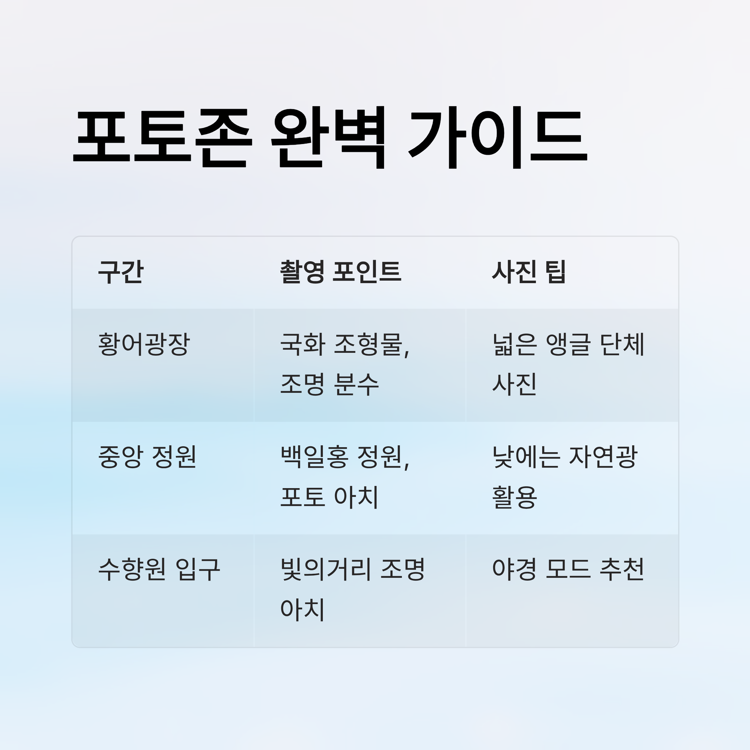 | 구간 | 추천 촬영 포인트 | 사진 팁 |